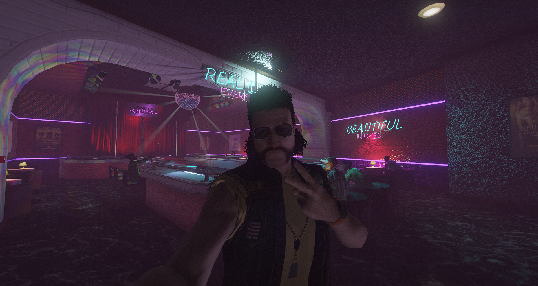Me voilà donc au Vanilla Unicorn, un endroit plein de poésie et de silicone, pour faire le vide. J’fais pas ça pour mater hein, j’viens pour l’ambiance lumineuse. Les néons, ça m’apaise. On dirait Noël mais version majeur et vacciné. 🎄💃